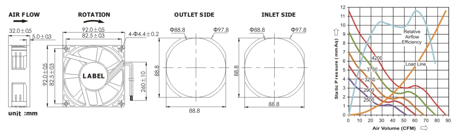 Life Expectancy--- Ball 100000hrs @ 4200RPM @ 30°C